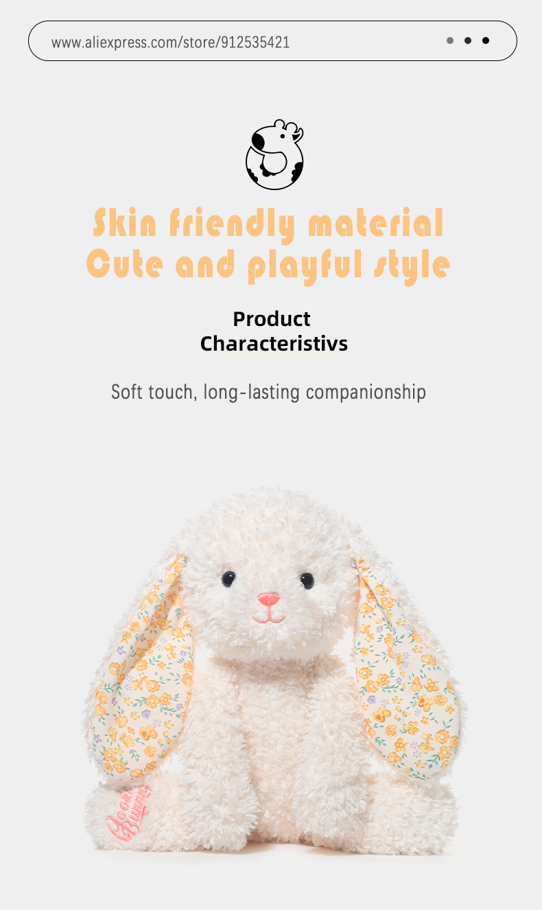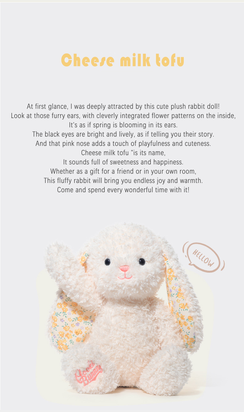 Adorable retro florals meet modern charm! This ultra-soft bunny features delicate embroidered blooms on its ears, perfect for cuddles or cute photos. 🎀✨ Gift-ready & pet-approved! -