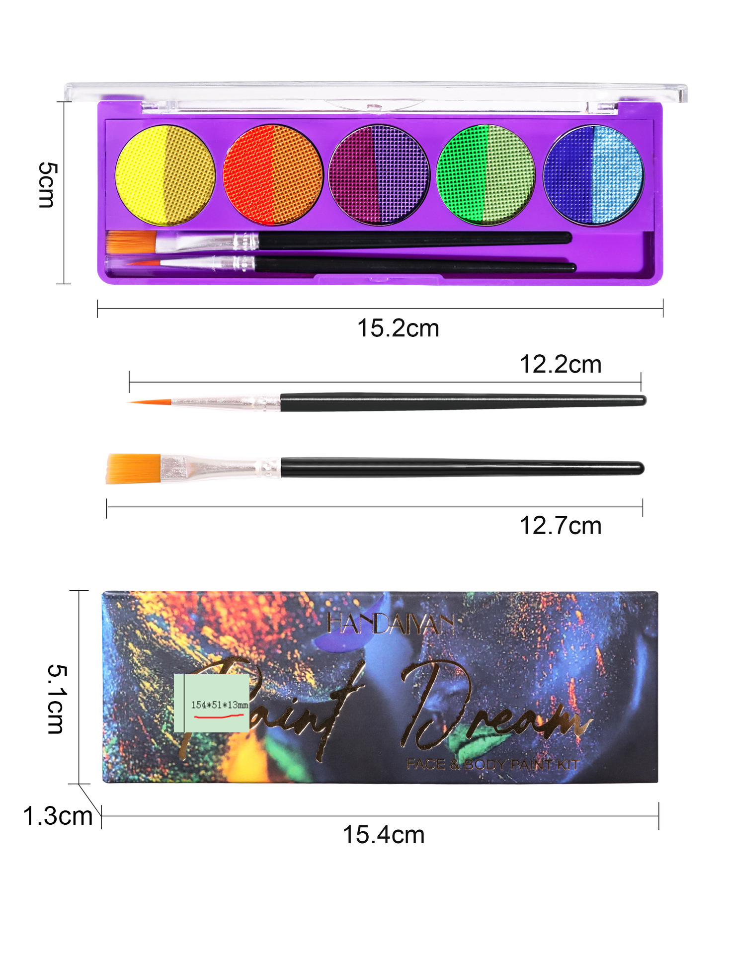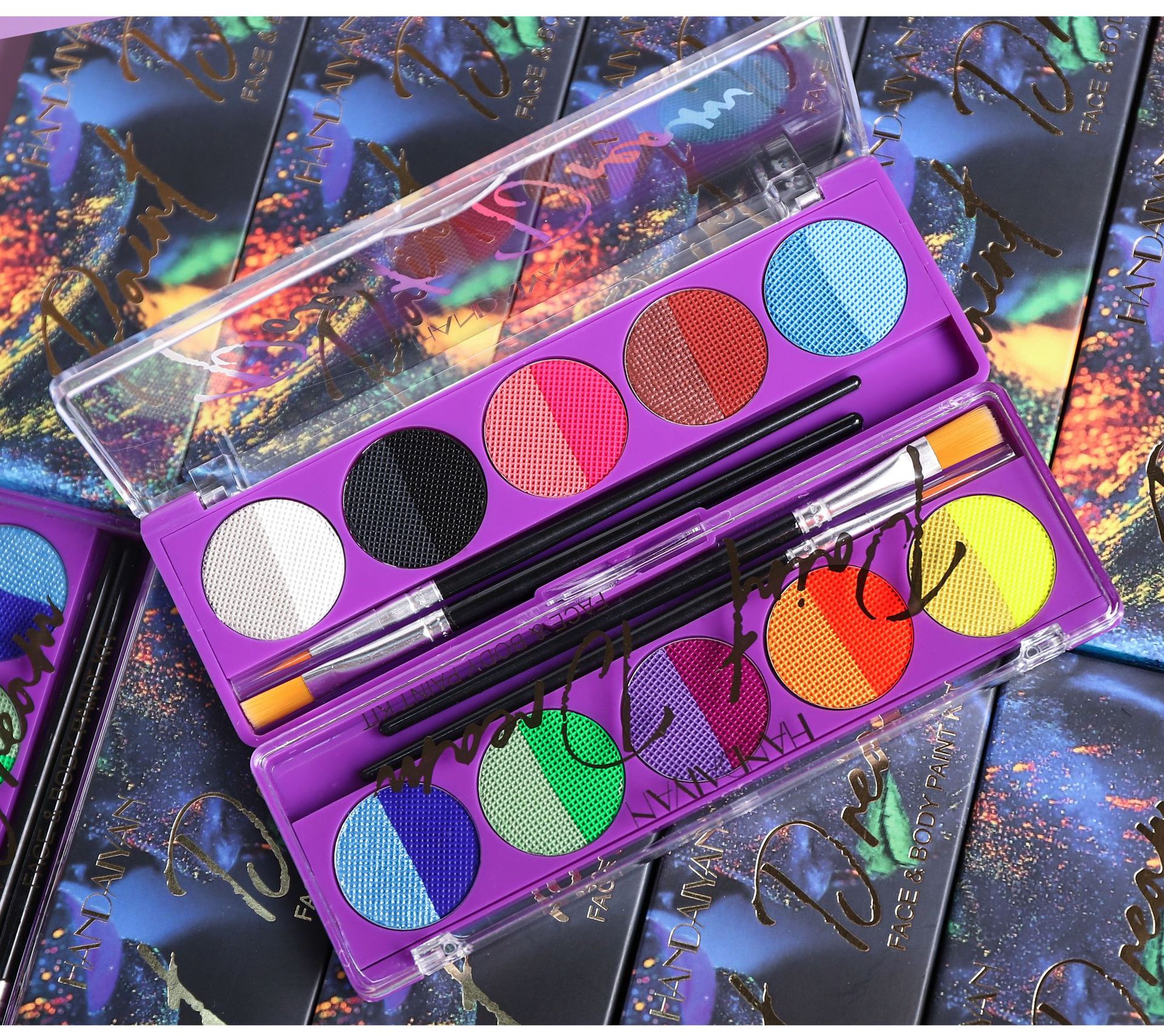 Light up the night with our UV Body & Face Paint Palette – the ultimate choice for bold, creative looks at parties, festivals, and clubs! This eco-friendly, non-toxic palette features 8 vibrant colors, with 4 fluorescent shades that glow brilliantly under UV light. Whether you’re painting your face, arms, or body, this palette is perfect for creating eye-catching designs that stand out in the dark.