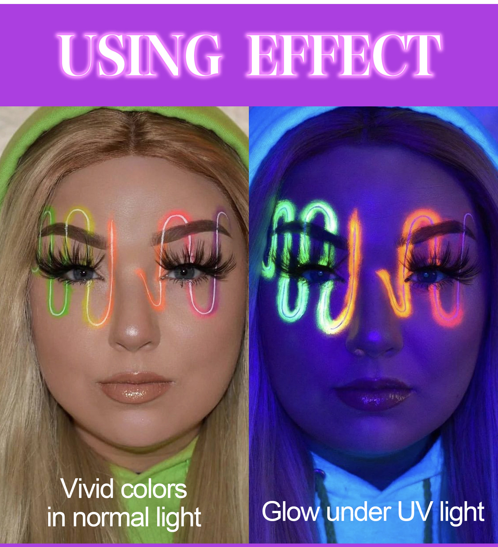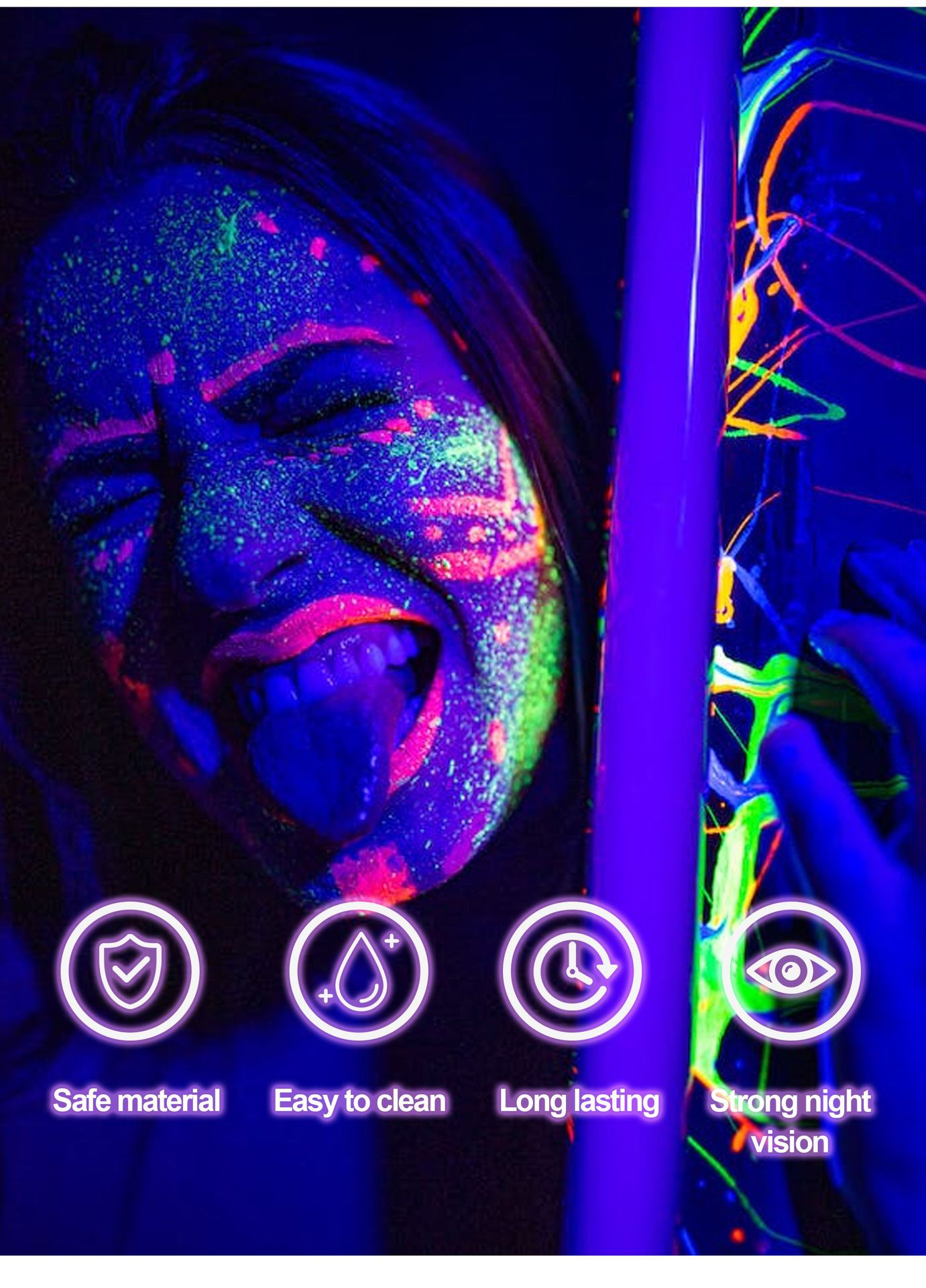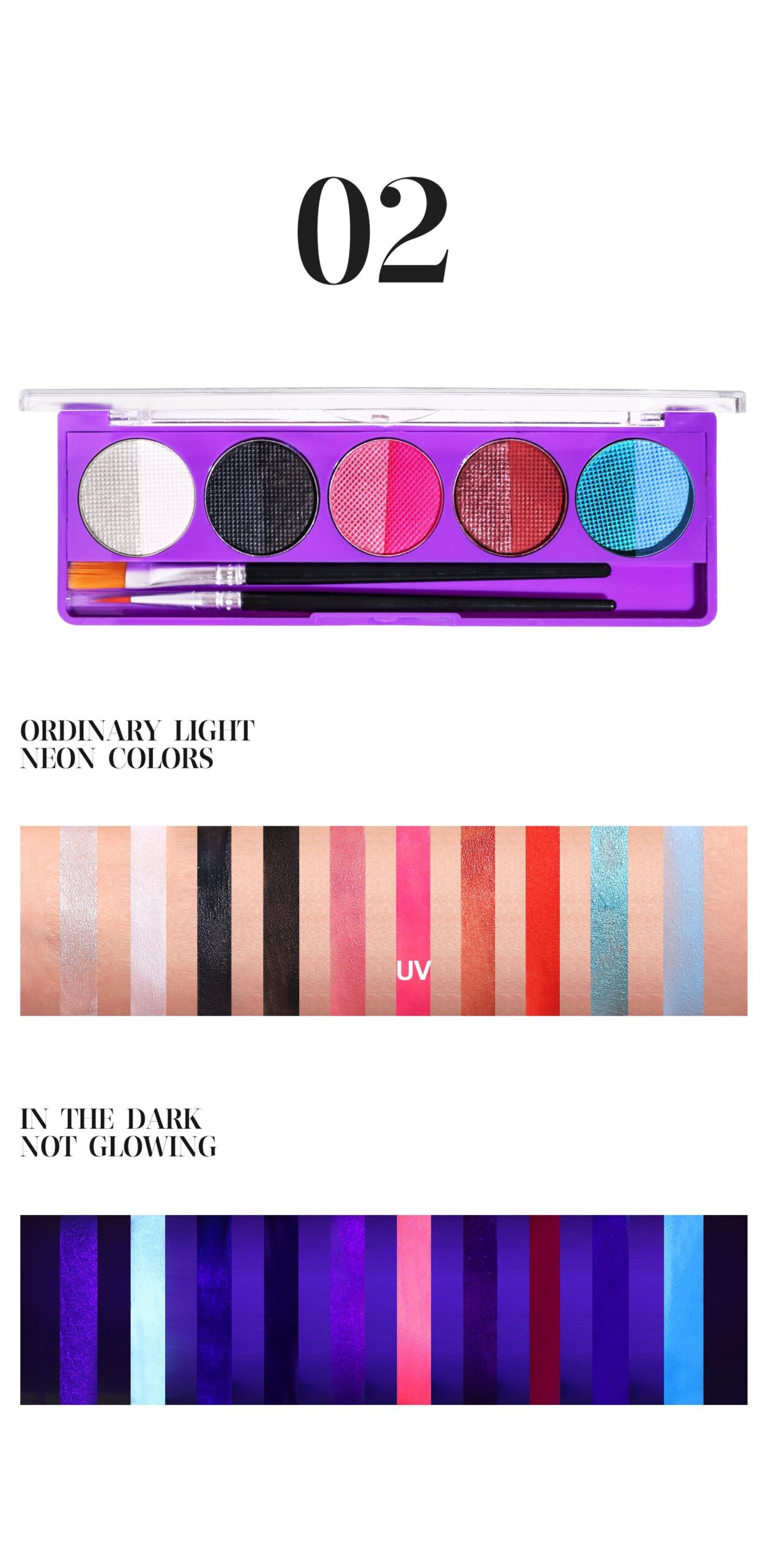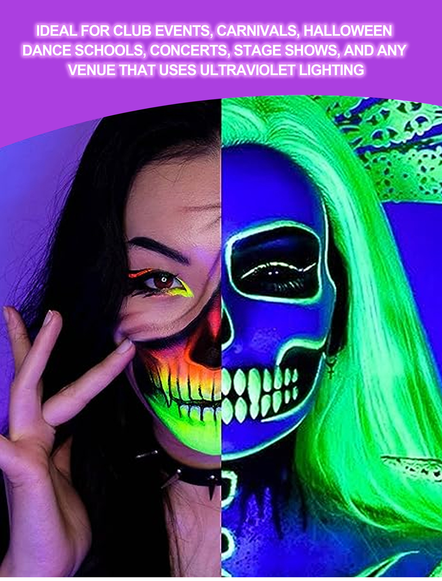 Whether you’re heading to a rave, a costume party, or a music festival, our UV Body & Face Paint Palette will help you create unforgettable looks that glow in the dark. Get creative, stand out, and light up the night!